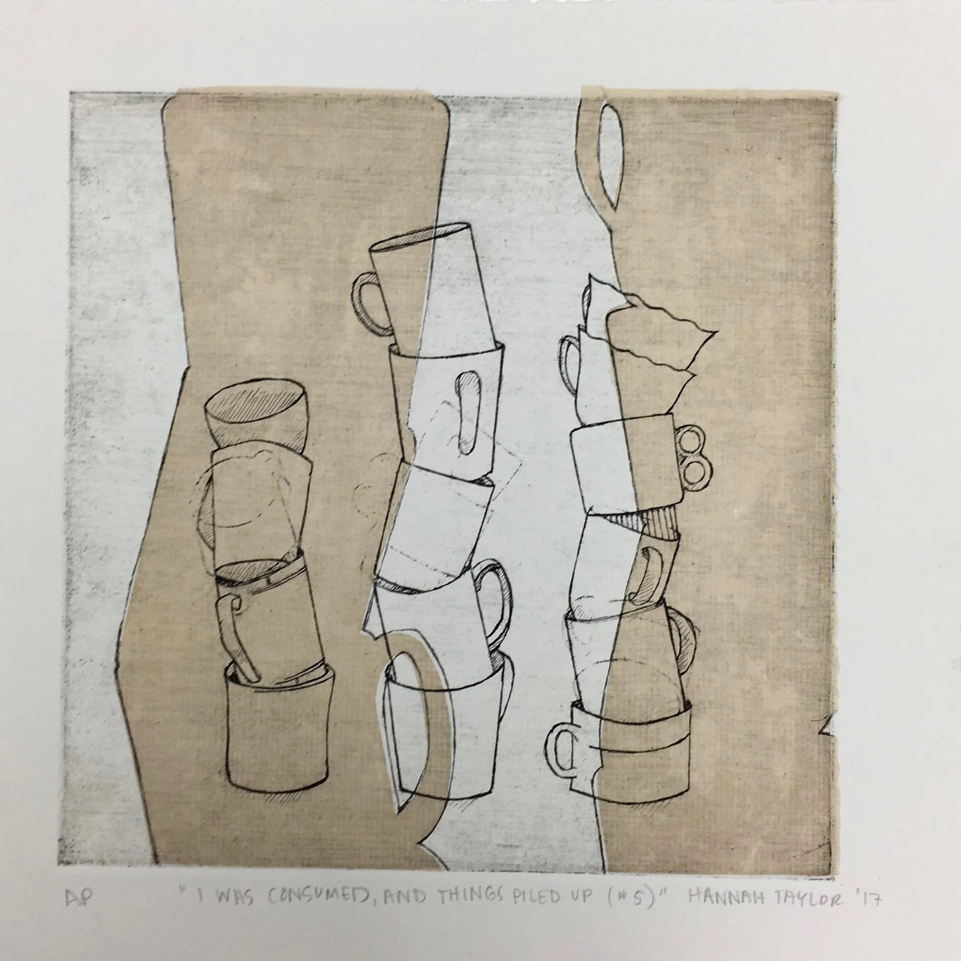 I Was Consumed, and Things Piled Up, 10x10”, Intaglio Print, 2017